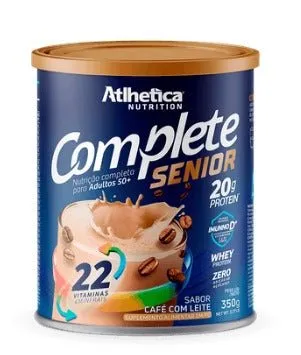 Complete Senior 50+ Café com Leite da Atlhetica Nutrition é um suplemento nutricional desenvolvido especialmente para atender às necessidades de homens e mulheres com mais de 50 anos. Sua fórmula foi cuidadosamente elaborada com proteínas, vitaminas e minerais que auxiliam na manutenção da massa muscular, imunidade, saúde óssea e energia diária.