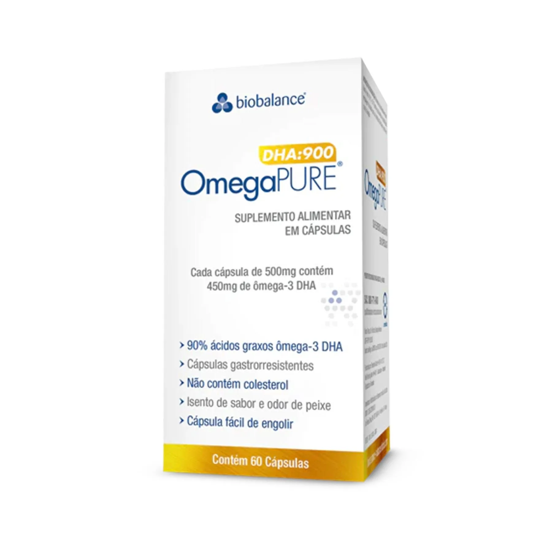 O OmegaPure® DHA da Biobalance é um suplemento de ácido docosahexaenoico (DHA) de alta qualidade e pureza. Matéria-prima sustentável e de alta qualidade Para fabricação de produtos de alta qualidade é imprescindível o uso de ingredientes puros e livres de contaminação. Os ingredientes de OmegaPure® DHA são extraídos de peixes oriundos das águas frias e intocadas do Pacífico Sul, ao longo da costa do Chile e Peru. Estas zonas de pesca da América do Sul são as mais regulamentadas do mundo. A cada ano as quotas de pesca são ajustadas para mais ou para menos, ou postergadas em função da saúde, tamanho e número de peixes disponíveis. O uso desses peixes garante, portanto, não apenas produtos de elevada pureza e qualidade, mas também assegura a sustentabilidade ambiental do processo, garantindo o uso responsável dos recursos do oceano, o que vai de encontro com os princípios da Biobalance. OmegaPure®DHA:900 passa por um processo de purificação em etapas, no qual obtém-se um óleo de peixe com alto teor de ômega-3 (DHA), livre de contaminantes como metais pesados (Arsênio, Cádmio, Chumbo e Mercúrio). Dioxinas e PCBs, garantindo um produto de alta qualidade. As cápsulas gastrorresistentes de OmegaPure DHA® proporcionam maior conforto, pois evitam retrogosto e garantem a liberação do conteúdo diretamente no intestino. Numerosos estudos ligaram a complexidade desses lipídios da membrana ao equilíbrio dos processos fisiológicos. Recentemente, papéis cruciais da membrana no processo de envelhecimento foram elucidados, observando-se que essa composição muda com a idade, havendo associação direta entre as alterações desses lipídeos e as patologias relacionadas ao envelhecimento. É importante notar que as dietas ocidentais modernas são excessivamente abundantes em ácidos graxos-6 em comparação com os ácidos graxos-3 e, portanto, o enriquecimento de DHA no cérebro pode ser comprometido. O DHA é um componente estrutural das membranas celulares que confere não apenas uma barreira de permeabilidade, mas também um ambiente estruturado essencial para o bom funcionamento da integração celular, e da regulação neuronal, auxiliando na preservação do sistema nervoso central.